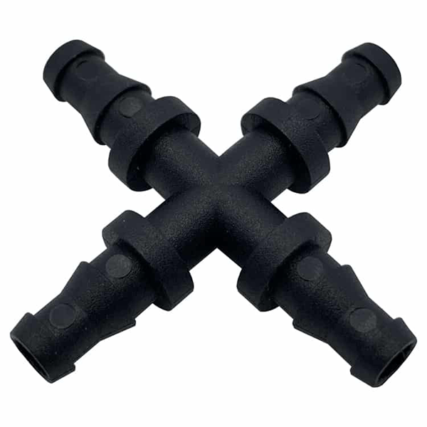 AutoPot 4×9 mm krustenveida savienotājs. Nodrošina ūdensnecaurlaidīgu savienojumu starp apūdeņošanas šļūtenēm.