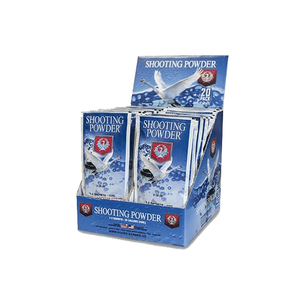 House & Garden Shooting Powder liek augiem sākt jaunu ziedēšanas ciklu pēc tam, kad beidzies normālais cikls, ievērojami palielinot kopējo augļu svaru. Papildu raža, kas sasniegta ar šo produktu, pārsteigs pat vispieredzējušāko audzētāju. Tādējādi ir iespējams sasniegt līdz pat 20 % lielāku ražu, kas ir ļoti izplatīts.